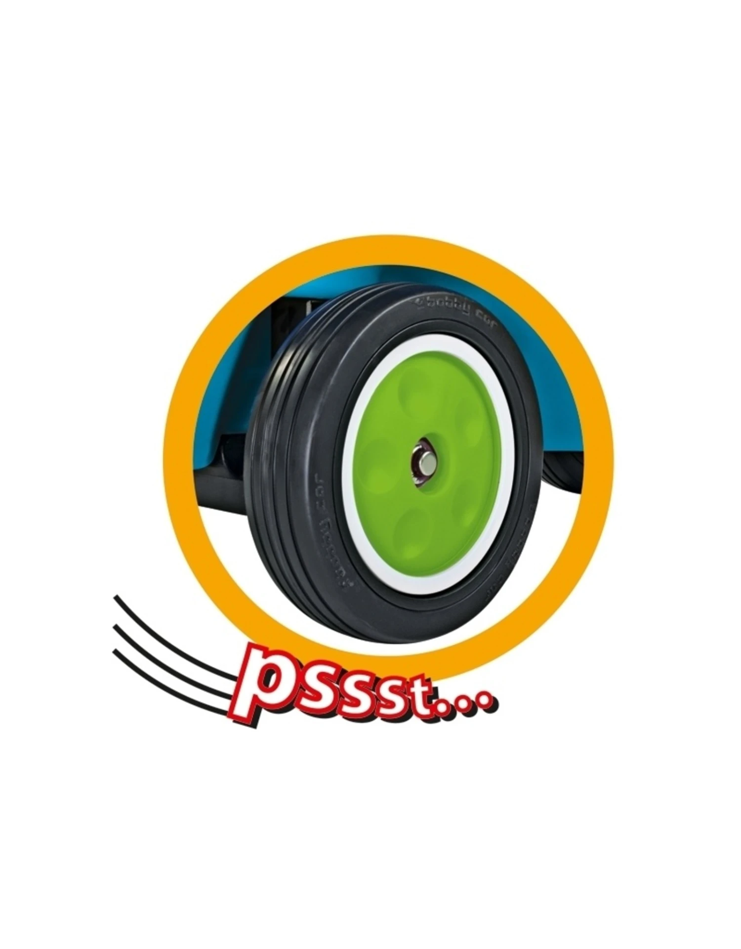 De New-Bobby-Car in een flitsend race-design. Blauw body met limegroene accenten.