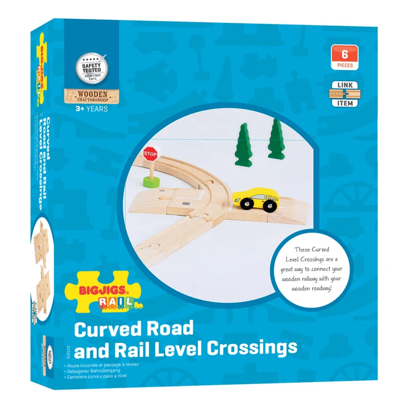 Breng uw Bigjigs weg- en spoornetwerken samen met dit slimme accessoire. De dubbelzijdige houten gebogen spoorwegovergang kan eenvoudig worden aangesloten op onze bestverkochte Acht-figuur-treinset of kan creatief worden gebruikt door jongeren die zelf interessante lay-outs willen ontwerpen! Een Bigjigs weg- en spoorverbindingsitem! Verbindt het spoor en de rijbaan, zodat kinderen genoeg hebben om mee te werken. Bestaat uit 6 speelstukken. De meeste andere grote merken houten spoorwegen zijn compatibel met Bigjigs Rail. Gemaakt van hoogwaardige, verantwoorde materialen. Voldoet aan de huidige Europese veiligheidsnormen.