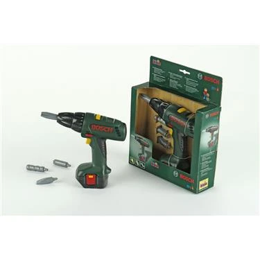 Bosch schroefmachine met verschillende draaiende boortjes en schroefbitjes.Zowel rechts- als linksdraaiend. Met realistische boor en schroefgeluiden en licht.