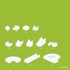 Met deze set wordt het assortiment van baanbouwstenen op een nuttige manier met nog 50 baanelementen en knikkers uitgebreid. Nu kunnen er nog grotere knikkerbanen worden gebouwd. Met deze aanvulling kunnen de mogelijkheden van de knikkerbaan individueel en nog creatiever worden uitgewerkt.