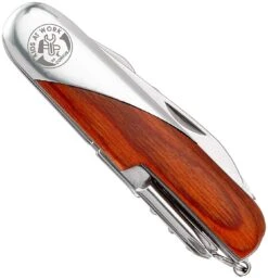 Het zakmes heeft diverse functies en heeft een houten handvat wat fijn in de hand ligt..