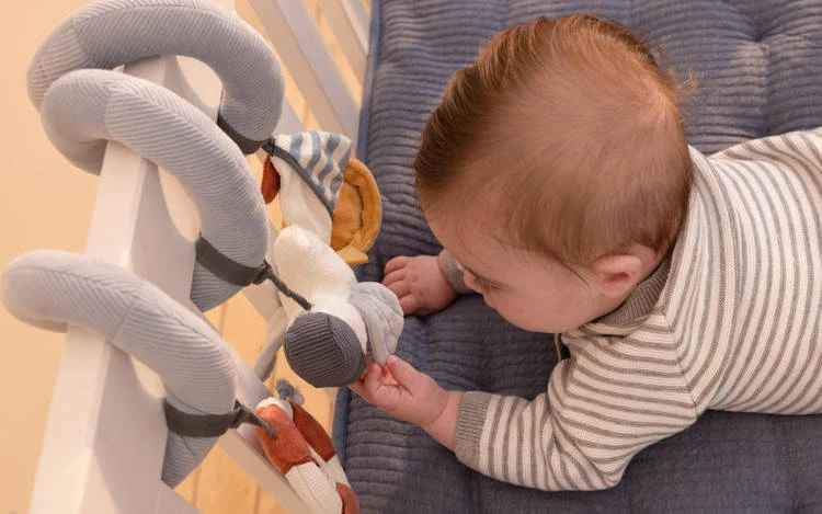 Ahoy, kleine matroos! Elke dag wordt een nieuw avontuur in de baai met deze uitnodigende activiteitenspiraal. Dit uitdagende speelgoed is gemaakt van katoen en corduroy en heeft verschillende speeltjes, waaronder een zeemeeuw, een zeilboot en een reddingsboei met verschillende leuke labels en een spiegeltje voor zelfontdekking. De spiraal stimuleert de eerste hand-oogcoördinatie van je kleintje en zorgt voor urenlang vermaak. Je kunt hem gemakkelijk bevestigen aan de box, een autostoeltje of kinderwagen.