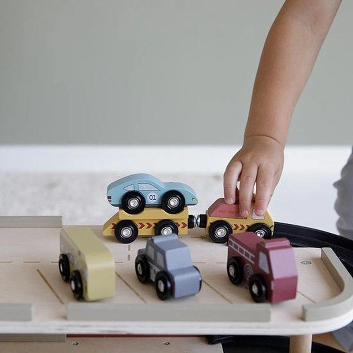 Deze houten bedrijfs en – hulpverleningsvoertuigen zijn ontworpen om samen te gebruiken met de houten treinset van Little Dutch. De voertuigen zijn geschikt om op de rails te rijden en zo hulp te bieden waar ze nodig zijn in de stad. Gebruik de voertuigen met de treinset XXL en de uitbreidingssets voor uren speelplezier.