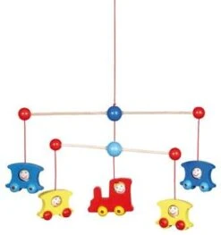 Houten mobile Trein van hoge kwaliteit, vervaardigd in Duitsland. De jongste baby’s vinden het leuk om naar de bewegende figuurtjes te kijken boven de wieg of de box. Iets later zal het kind niet meer louter de figuurtjes observeren maar ook proberen deze te vangen.