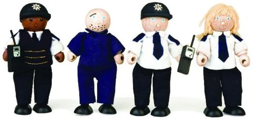 Drie politieagenten en een boef. Daar is geen ontsnappen meer aan! Snel in de politieauto en op weg naar het politiebureau. Achter slot en grendel met die boef!