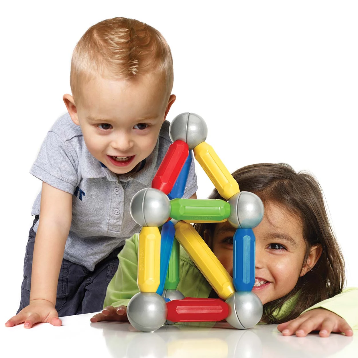 Mooie grote startset van SmartMax met 23 bouwstukken. De set bestaat uit 3 lange staven, 12 medium staven, 8 metalen ballen en een instructieboekje met voorbeelden.