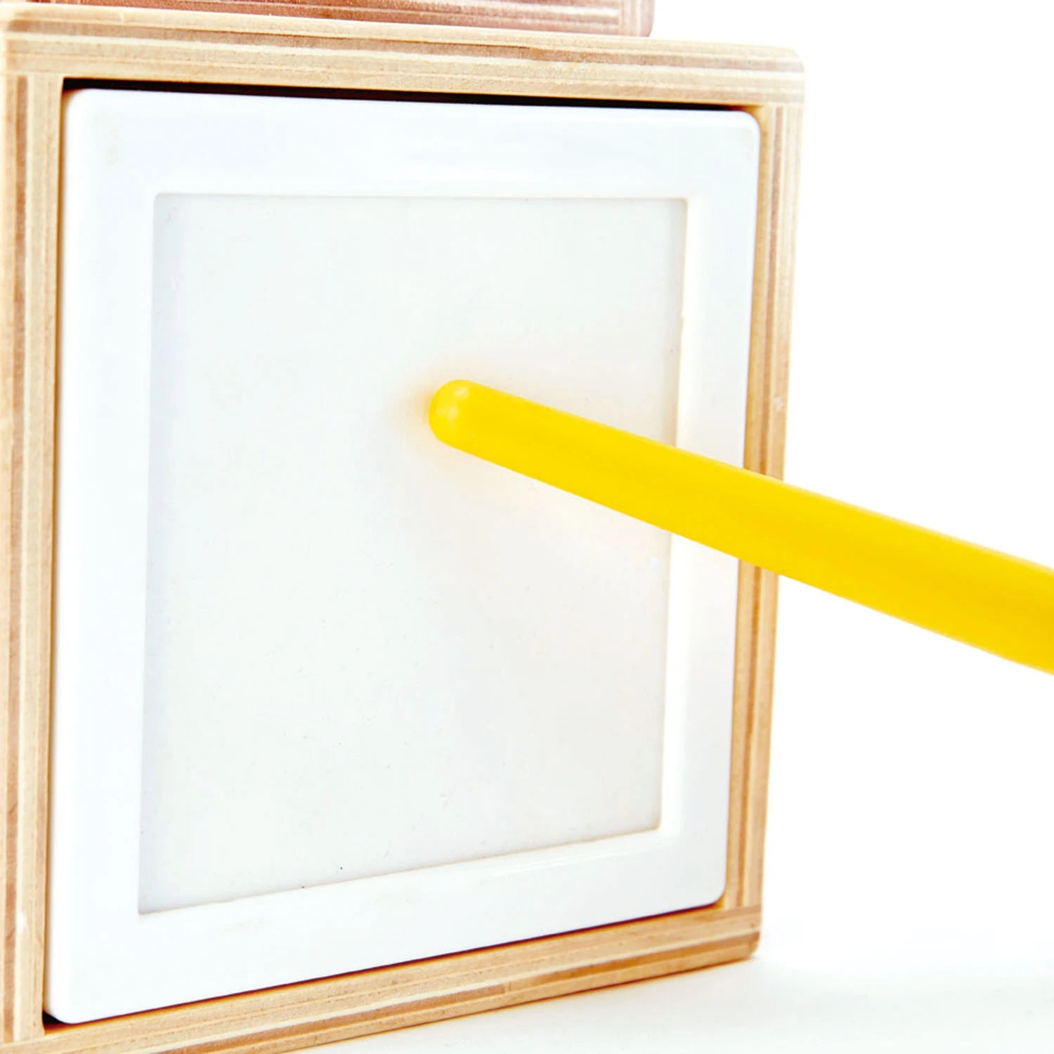 1. Haal de muziekblokken van elkaar af en bespeel een trommel, een xylofoon, een ratel, een krabbord en een minigong!
